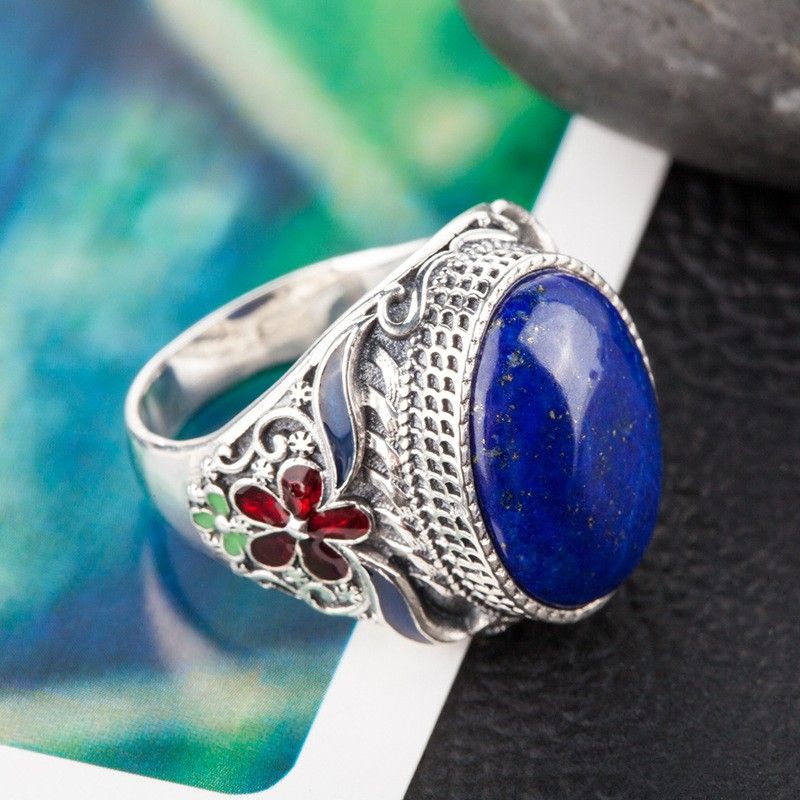 Exagération Atmosphère Bague En Lapis Lazuli Naturel Incrusté En Argent Sterling 925