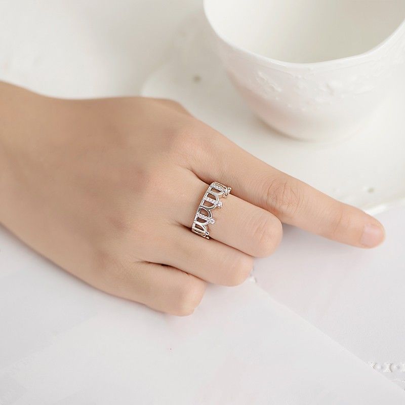 Exquisite Mosaics Bague De Couronne Rétro Plaquée Platine En Argent 925