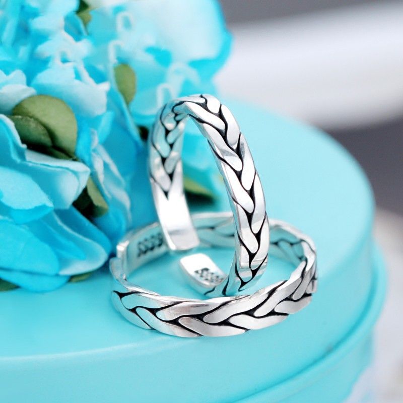 Fabrication Simple Et Fine S999 Anneaux D'ouverture De Couple Tissés À La Main En Argent Fin