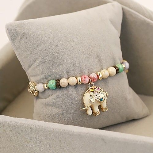 Gemmes Colorées Vintage Avec Le Bracelet Des Femmes Pendentif Éléphant En Vedette