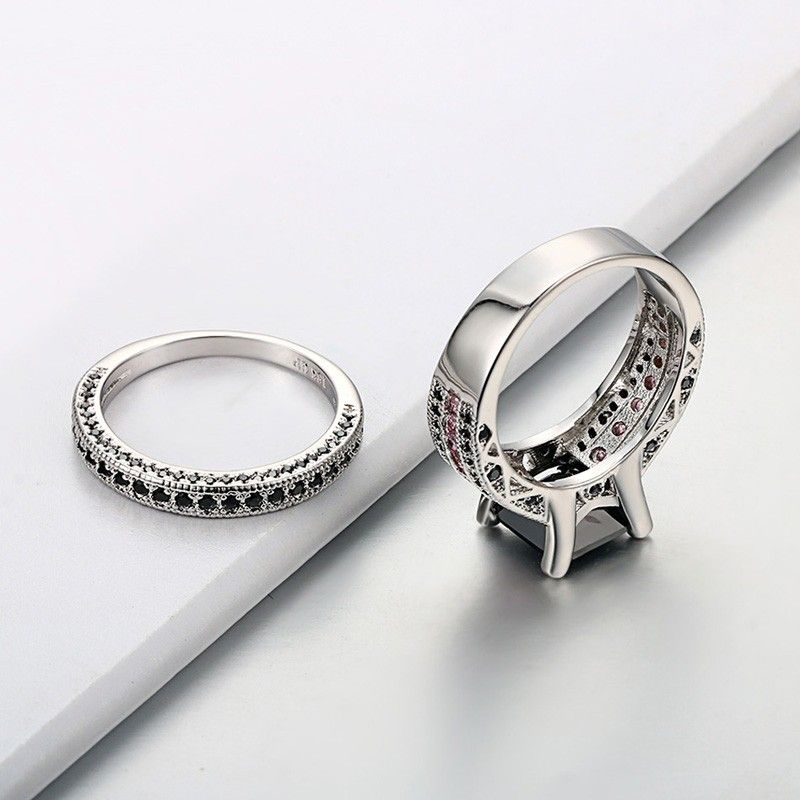 Le Polissage Exquis Ne Se Décolore Jamais En Cuivre Plaqué Or Blanc Incrusté De Pierres Précieuses Ensemble De Bagues