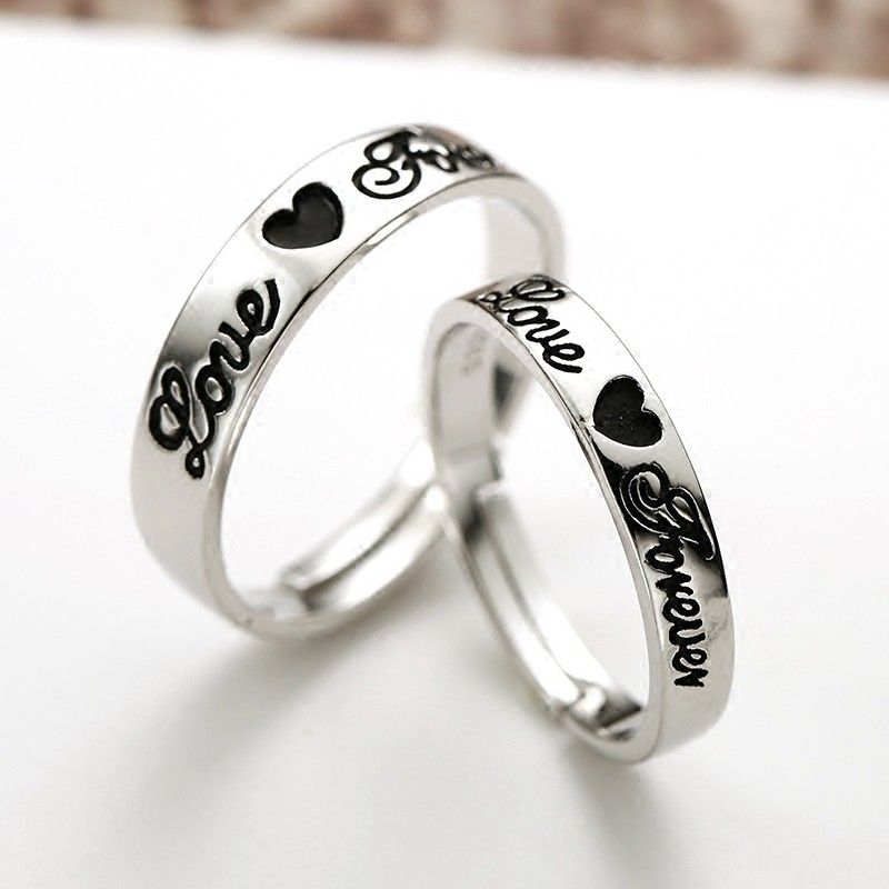 Lettres Simples Coréennes "have Mutual Affinity" En Forme De Coeur S925 Anneaux De Couple En Argent