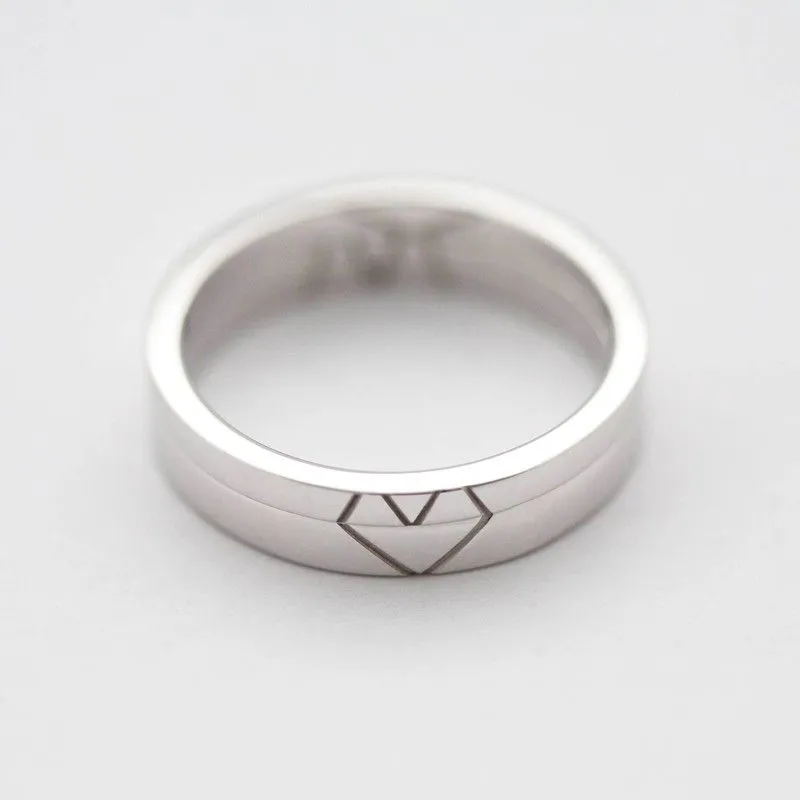 M Et V Unique En Forme De Coeur S925 Anneaux De Couple Amoureux En Argent Sterling