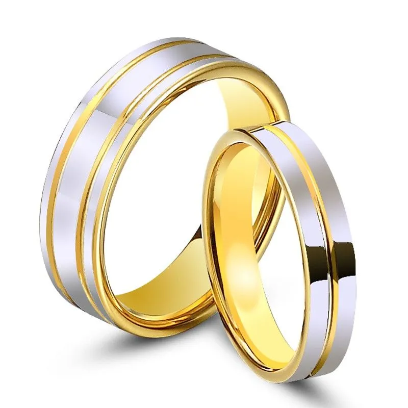 Mode Coréenne Anneaux De Couple En Tungstène Plaqué Or 18 Carats