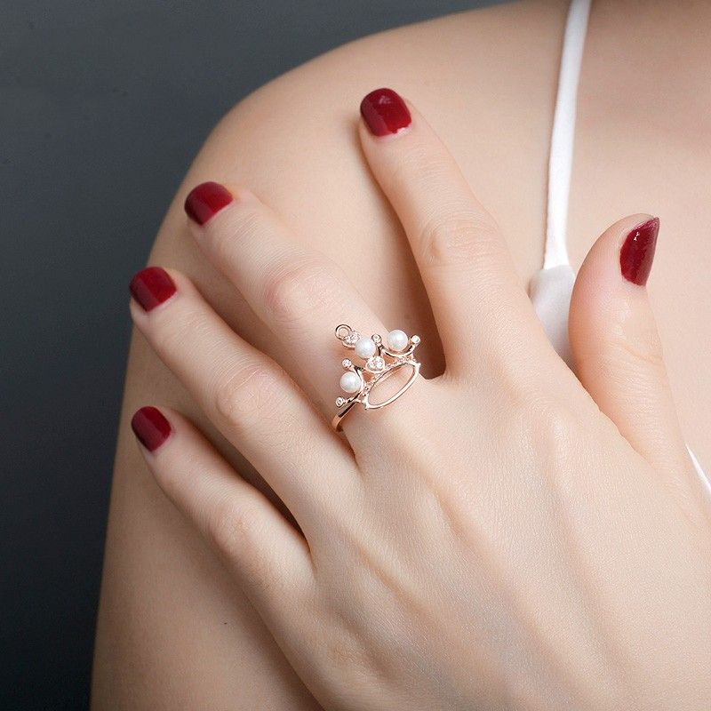 Noble Sparkling 925 Sterling Silver Incrusté Bague Couronne CZ Avec Trois Perles