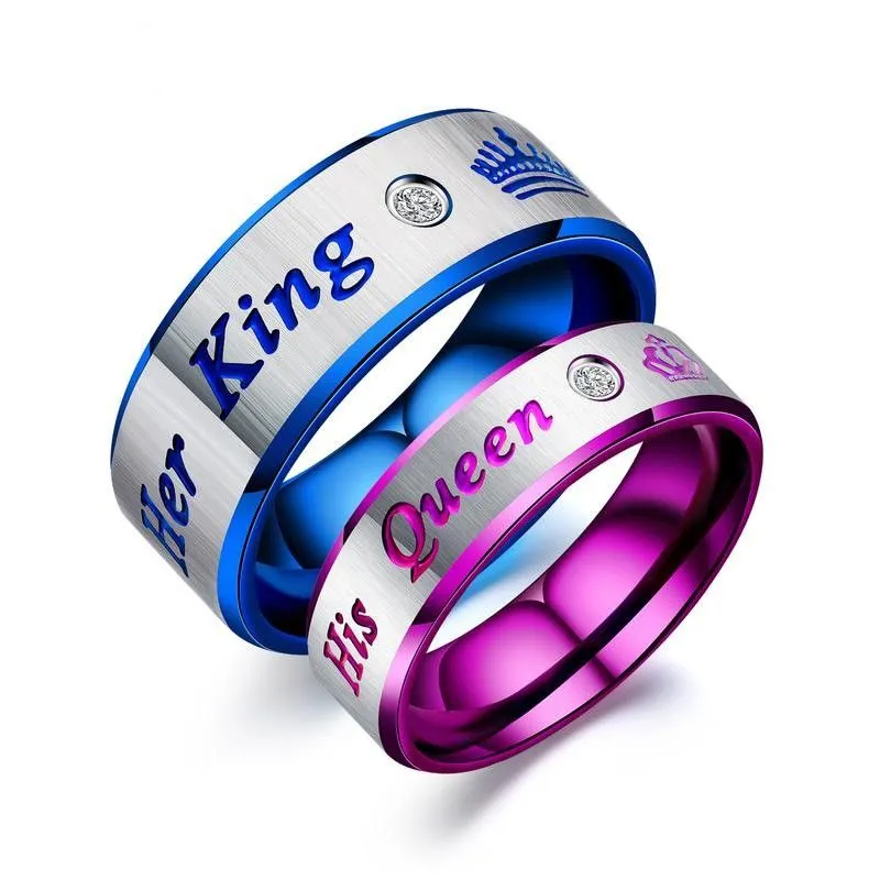 Nouveau Violet Sa Reine Et Bleu Ses Bagues De Promesse De Roi Pour Les Couples (prix Pour Une Paire)
