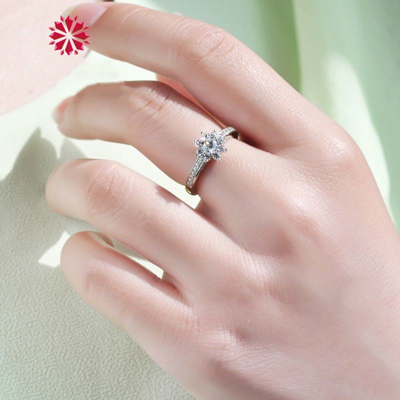 Nouvelle Bague De Fiançailles En Platine Plaquée Argent En Forme De Tournesol