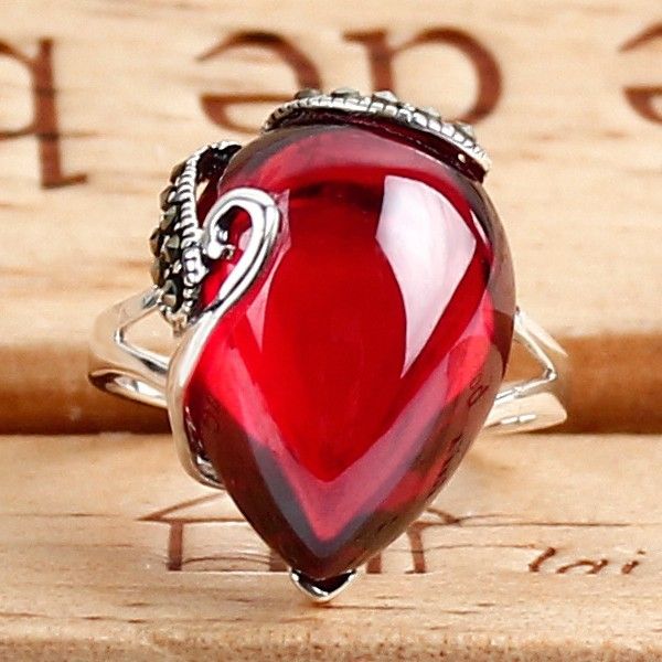 Nouvelle Bague Porte-bonheur En Grenat Incrusté En Argent Sterling 925 Rétro