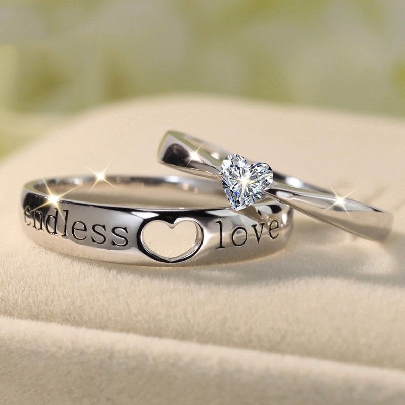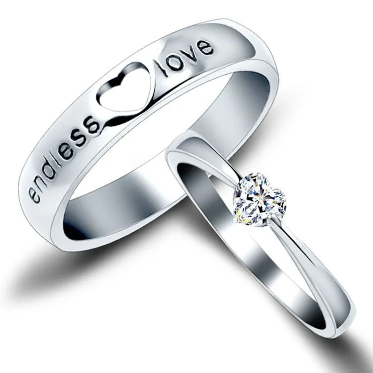 Nouvelle Mode "i Will Always Be With You" Forme De Coeur Unique 925 Anneaux De Couple De Coeur D'amant En Argent Sterling (prix Pour Une Paire)
