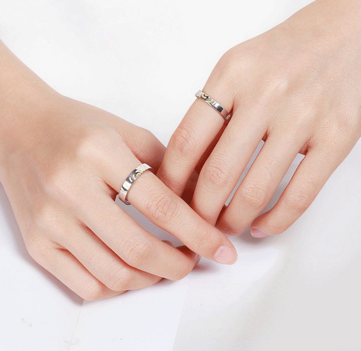 Ondulations De Coeur À La Mode Conception Originale Anneaux De Couple D'amoureux En Argent Sterling