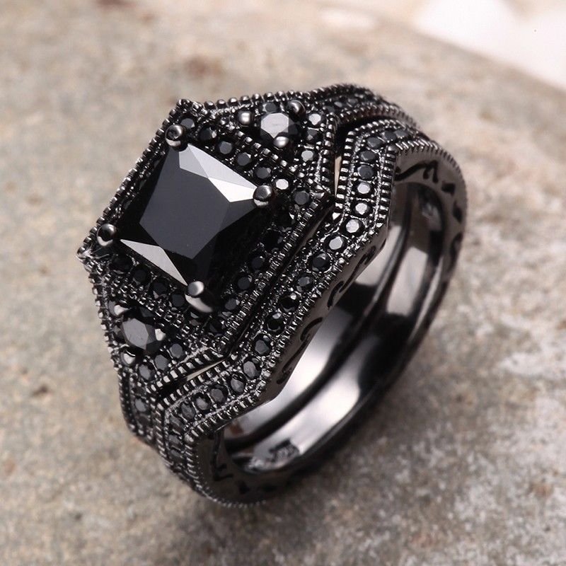 Princesse Cut CZ 925 Bague De Fiançailles / Mariage En Argent Sterling Plaqué Or Noir