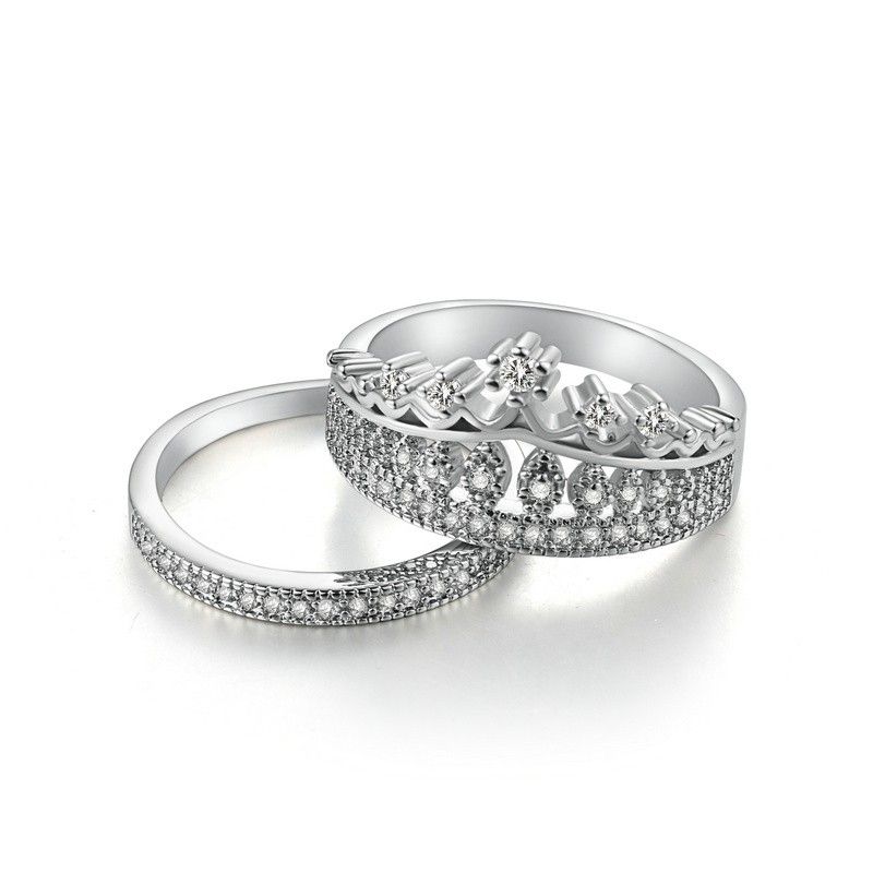 Rhodium Plaqué Cuivre De Haute Qualité Avec Anneau De Couronne De Tempérament Noble En Zircone Cubique