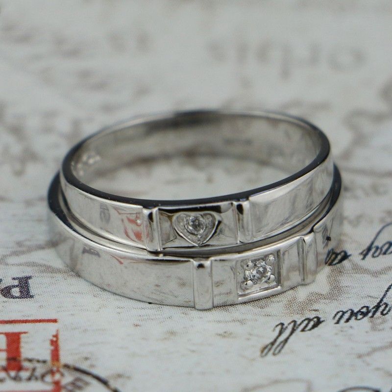 S925 Argent Incrusté De Zircons Cubiques Anneaux De Couple Créatifs Coeurs À Coeur