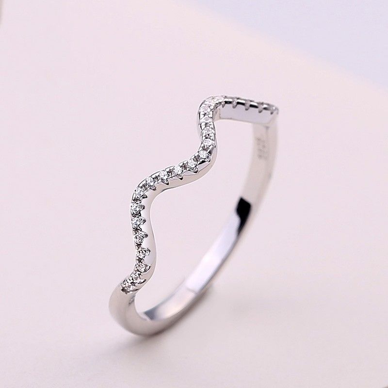 S925 Bague Femme Forme Ondulée Personnalité Argent Avec Zircon Cubique