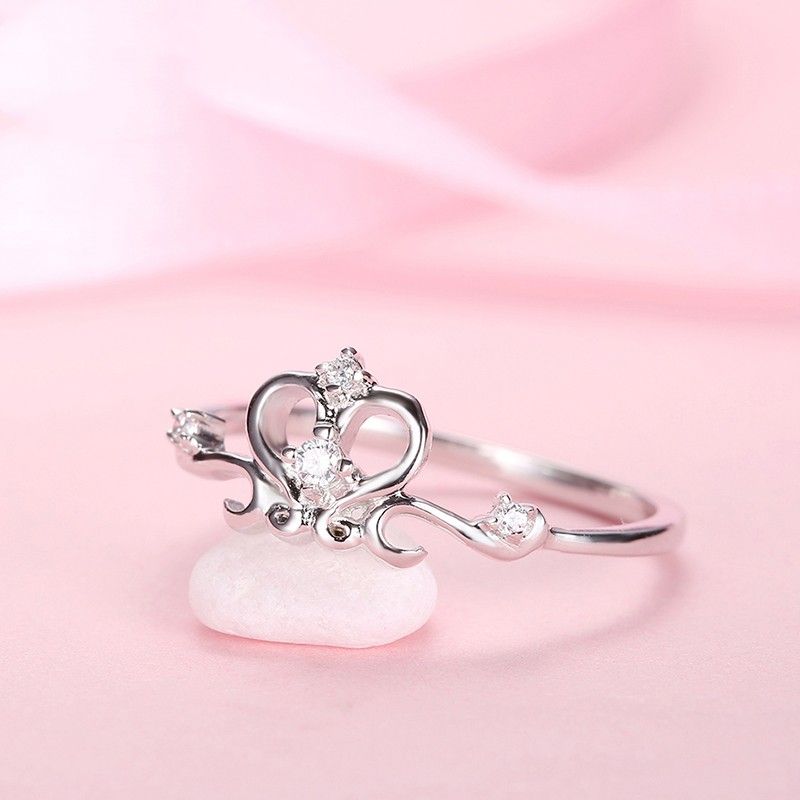 S925 Bague De Fiançailles Couronne De Cour En Forme De Coeur Avec Zircon Cubique Incrusté D'argent