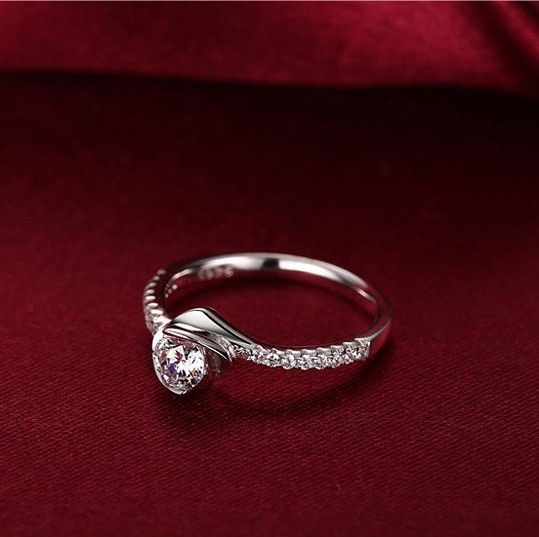 S925 Bague De Fiançailles CZ Parfait Incrustée De Rhodium Incrusté D'argent