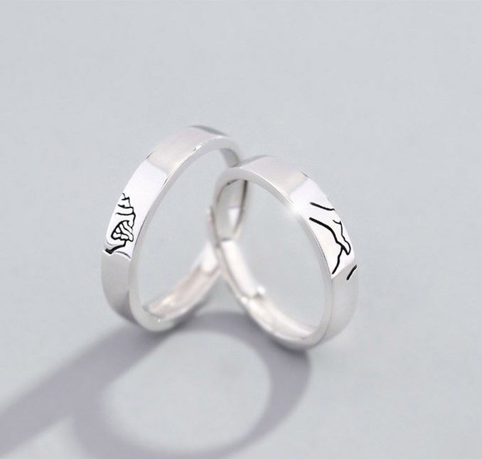 Se Tenir La Main S925 Anneaux De Couple Ajustables Pour Amoureux En Argent Sterling