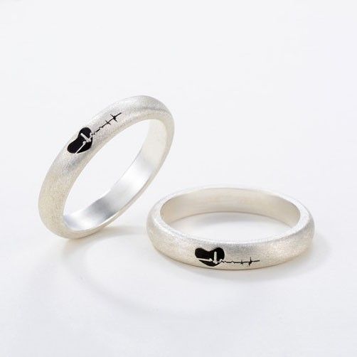 Simple Low-key S925 Argent Personnalité Créative Heartbeat Couple Anneaux