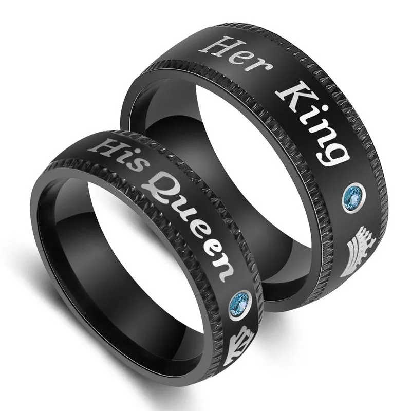 Son Roi Et Sa Reine Anneaux De Promesse Noirs Pour Couples (prix Pour Une Paire)