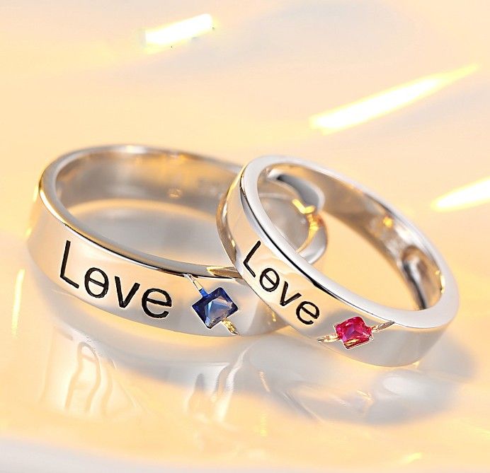 Trèfle À Quatre Feuilles Et Conception De Coeur S925 Anneaux De Couple Réglables Pour Amoureux En Argent Sterling