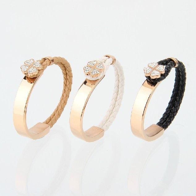 Trèfle À Quatre Feuilles De Mode En Cuir Tressé En Acier Au Titane Avec Bracelet Pour Femmes Charmant Bell