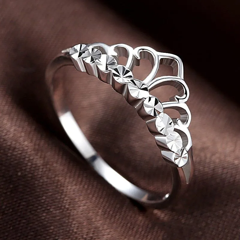 Version Coréenne De La Bague De Fiançailles En Argent Sterling 925 Simple Crown Mouldings
